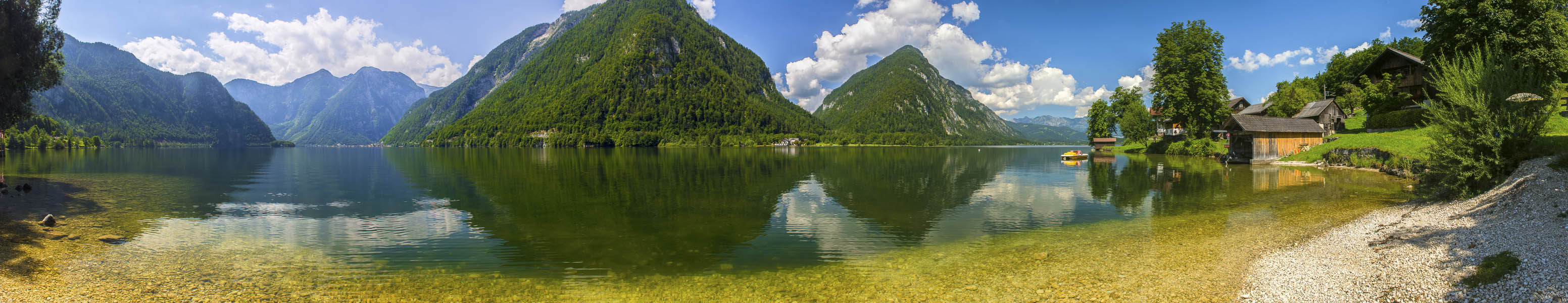 Panoramic view of Lake Hallstatt, as seen from the jetty (and railway station) at Obersee.