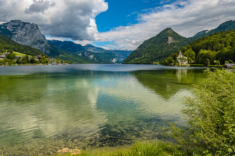 After many ups and downs, we reach the village of Grundlsee with a wonderful view over the lake.