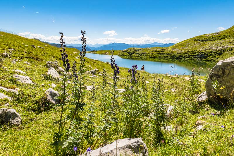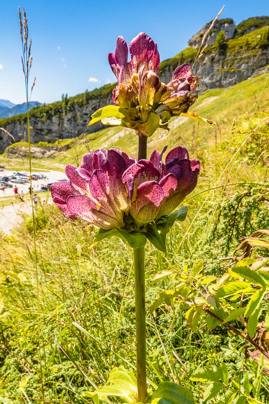 Shortly above the path, the Hungarian gentian (Gentiana pannonica) is in flower.