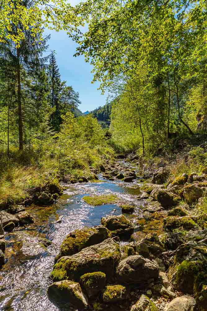 At the junction to the Moosalm, the Moss-beck flows over moss-covered rocks - such a lot of moss ...