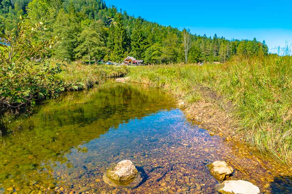 With the bicycles on the car, we drive over Pötschenpass to Bad Ischl and further to Rußbach near Strobl, and up to the Schwarzensee.