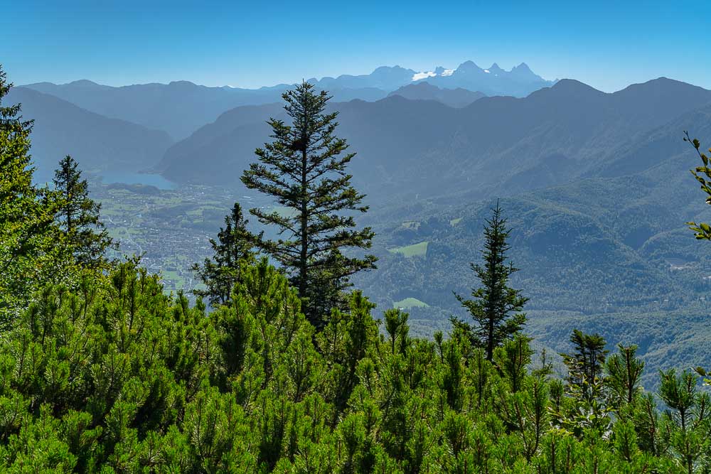 Once more the view to Bad Ischl, in the background the prominent summit of the Traunstein and a small glimpse to the Traunsee.