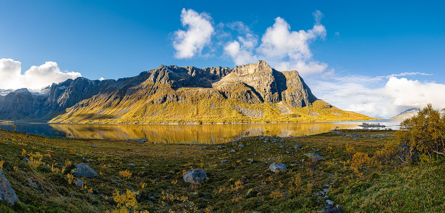 Panoramic view of the Grøtfjords in the north of the island of Kvaløya.