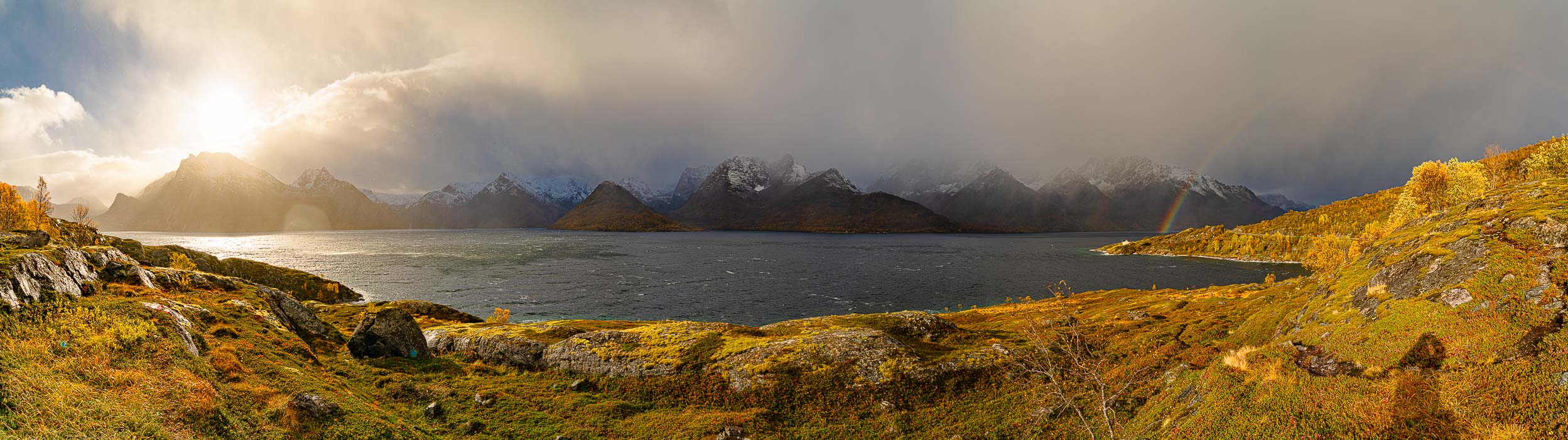 Panoramic picture of the Øksfjord to the south and west from Steinvikneset.