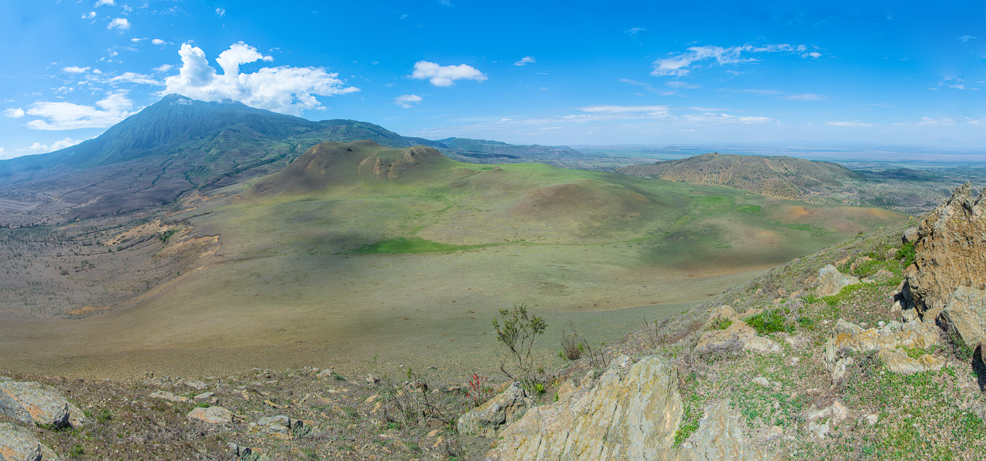 Western summit panorama from Mukuru. Mount Meru to the left.
