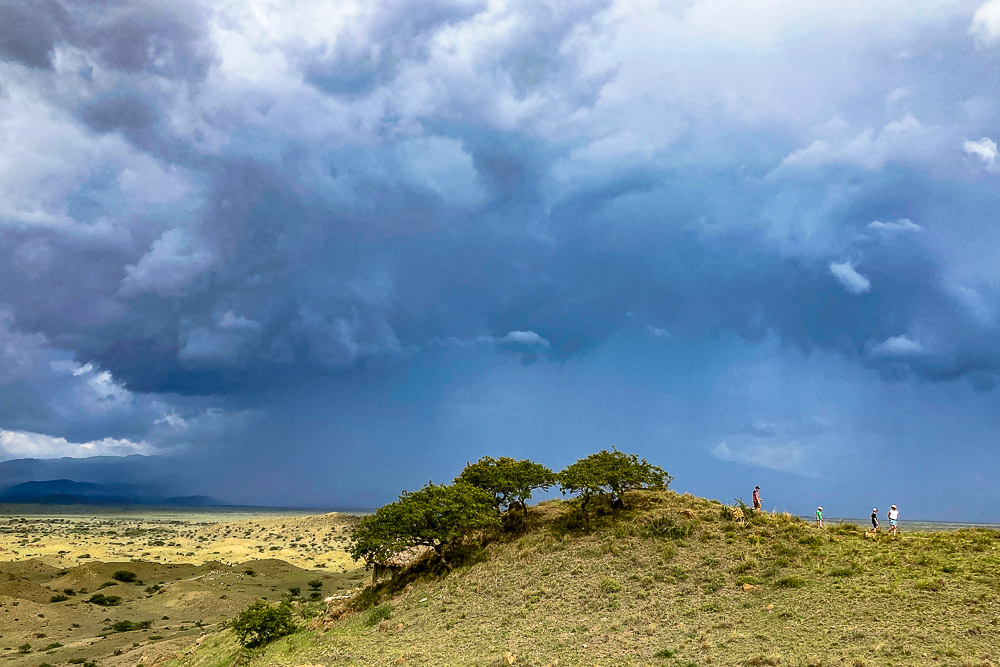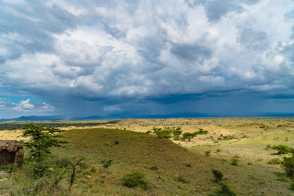 Back at the lodge. Rain shower over Kilimandscharo in the afternoon.