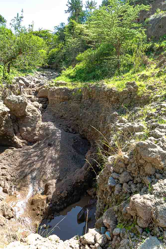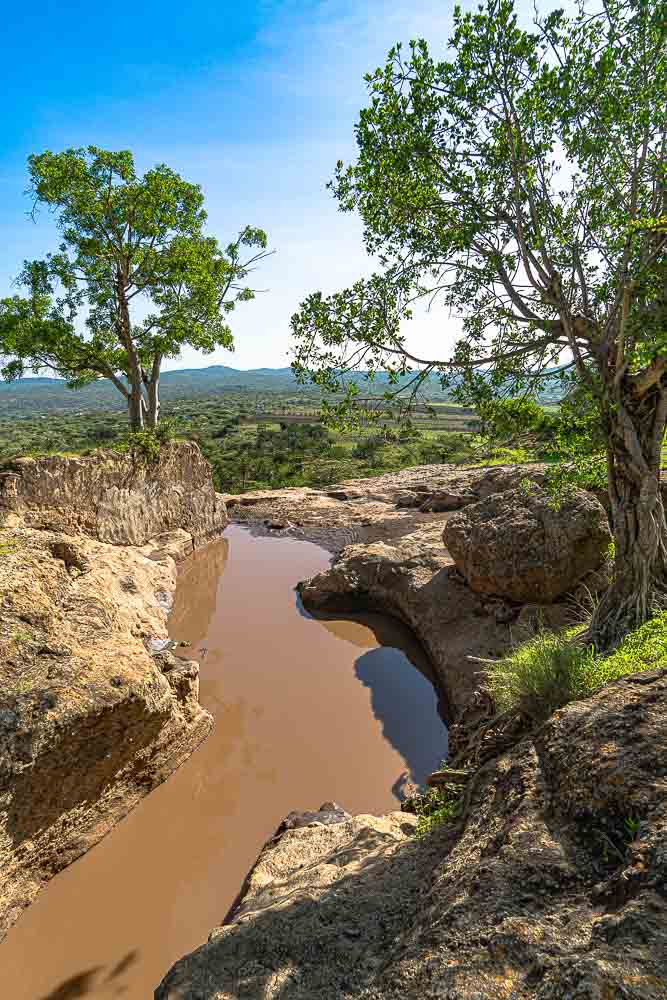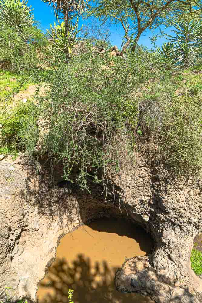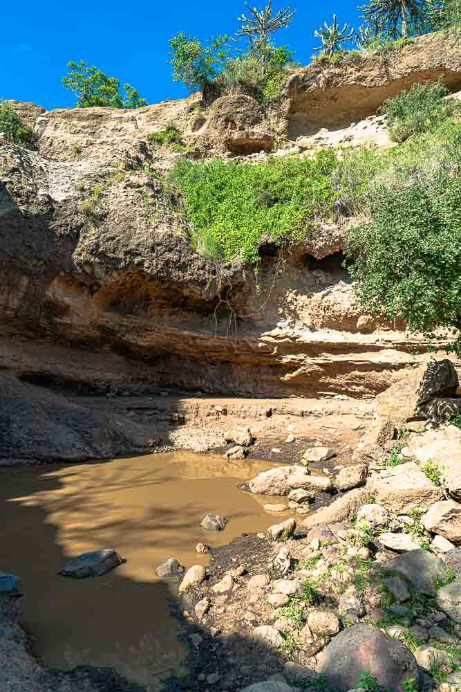 The puddle is several metres deep, says our Maasai guide - due to washing out by the waterfall.