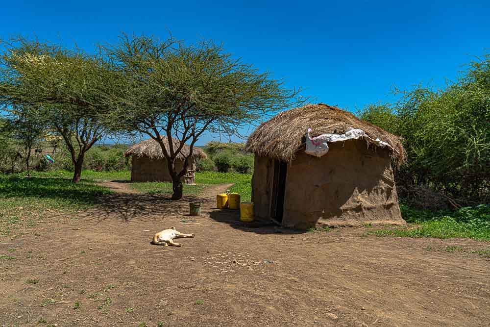 We visit a Maasai - Boma. "Boma" means fortification, an that´s it. Only a narrow entrance into a circular area, delimited by high heaps of thorny acazia branches. Inside are houses of the Maasai - (extended tribal-) family.