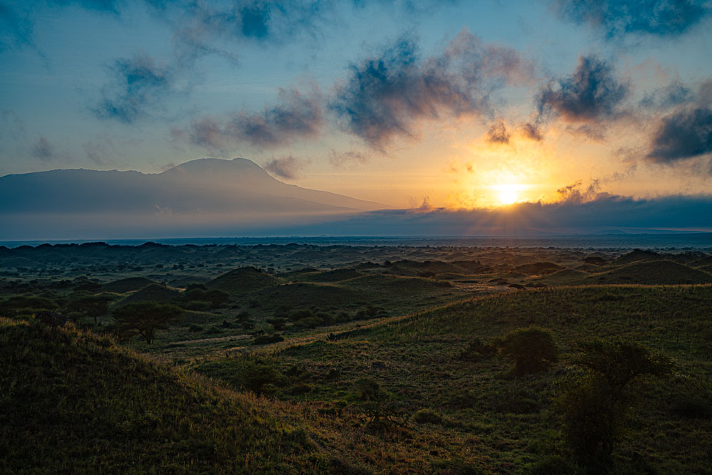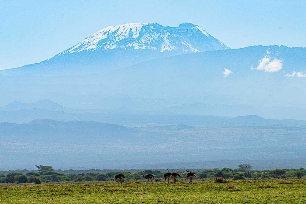 The Sinya wildlife reservatory is situated north of Kilimandscharo and is the continuatrion of the Kenian Amboseli - National park on Tansanian territory. Today, an eastern wind is blowing away the thermik clouds from Kilimandscharo, so we have free sight to the summit till afternoon.