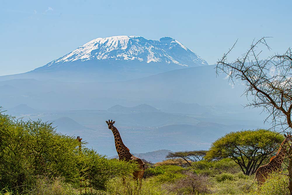Giraffe and the view to the foothills of the Kilimandscharo massiv.