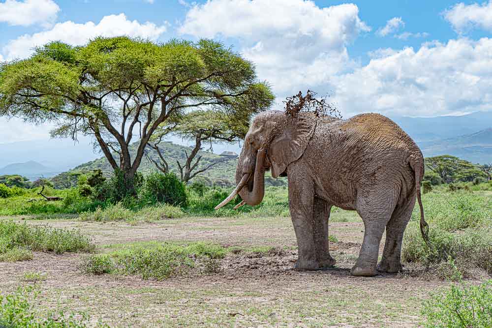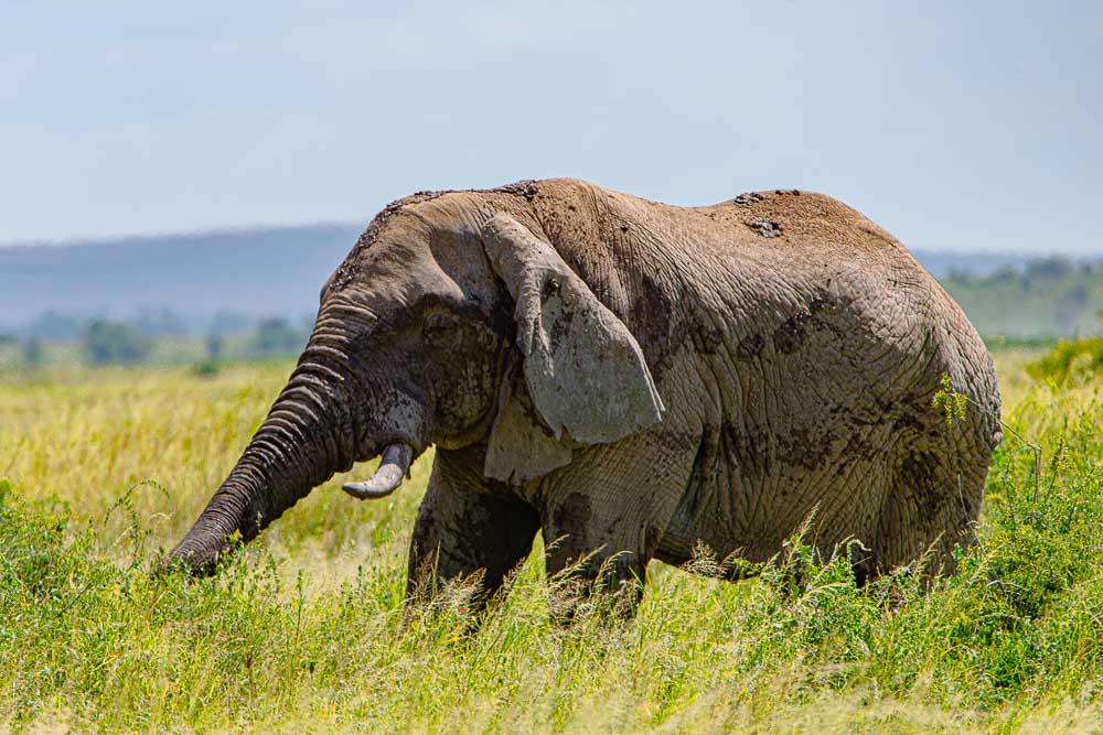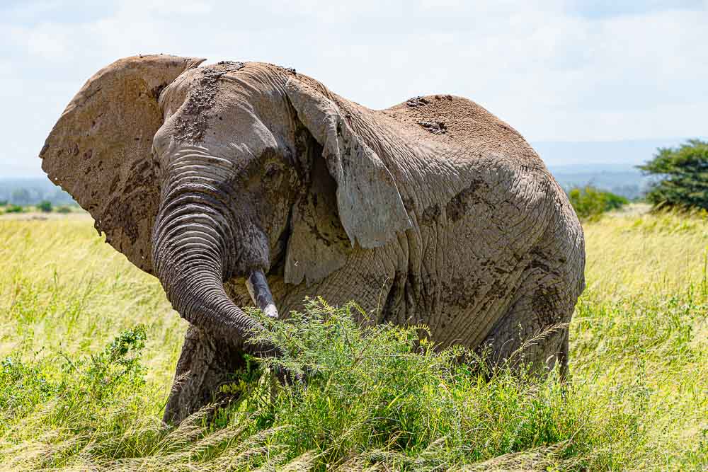 We find this lhis lonesome elephant bull on the border to Kenia.