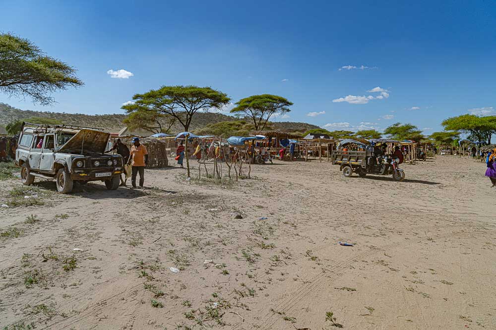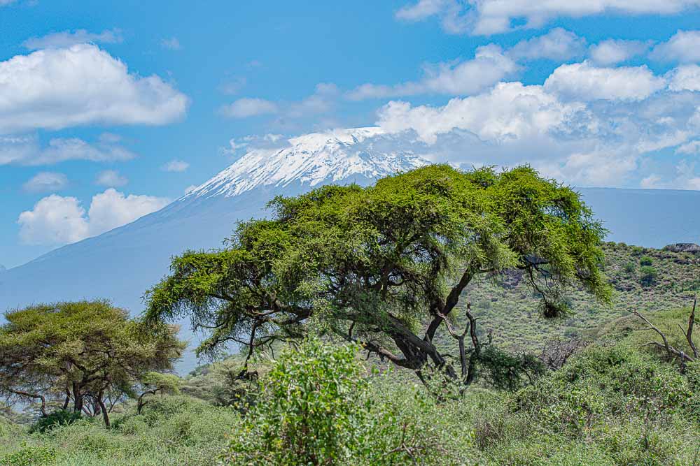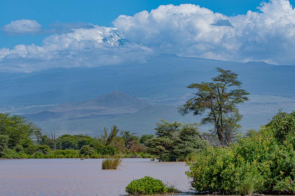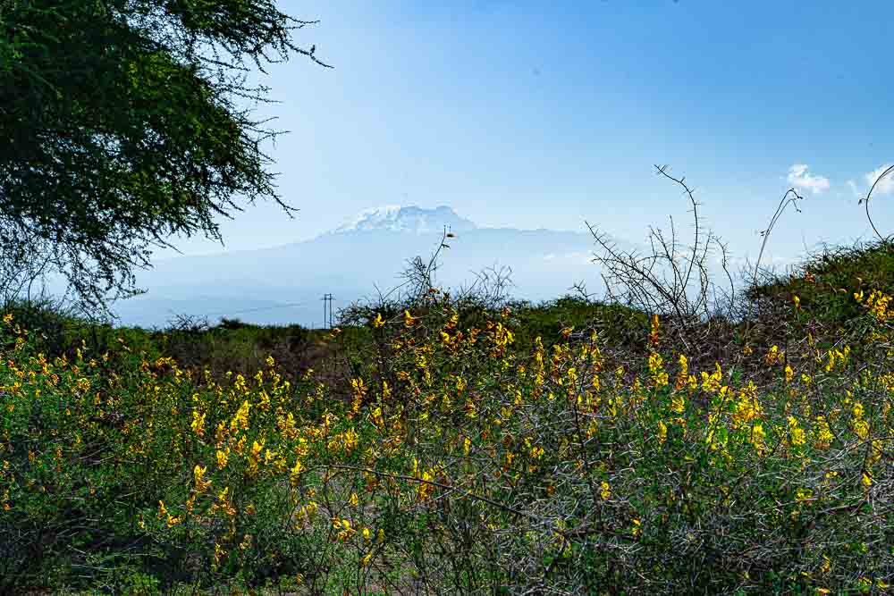 At the gate to the reservatory we get a first view to Kilimandscharo.