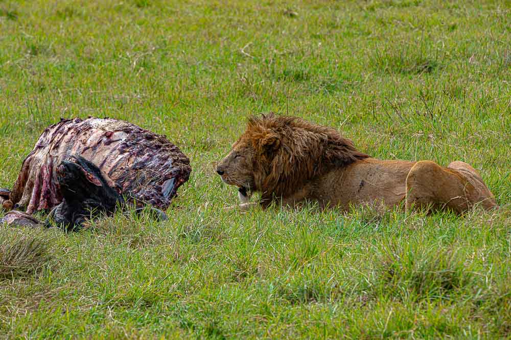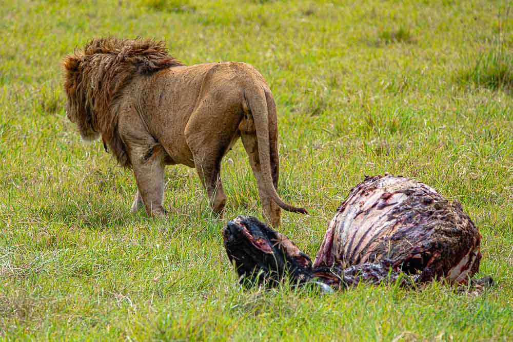 The chief of the clan is watching his prey, a buffalo largely gnawed off.