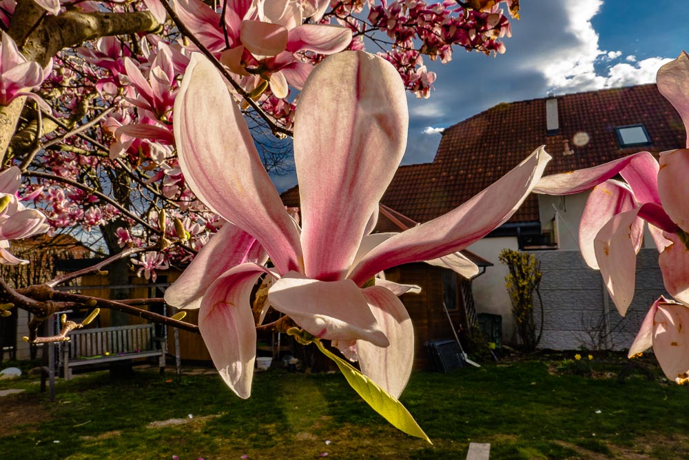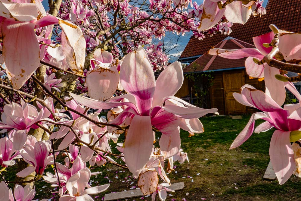 16.3.2024: an unbelievably early barbecue afternoon in the garden, the magnolia in flower already.