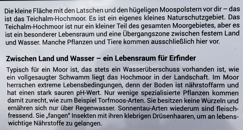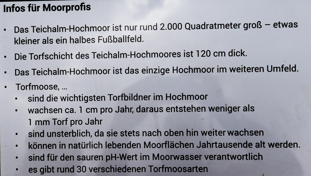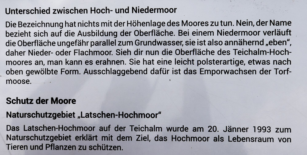 Wir zweigen jetzt zum Teichalm - Moor ab, ein kurzer Rundweg, durchwegs auf einem Holzsteg, um die Natur des Moors nicht zu gefährden.