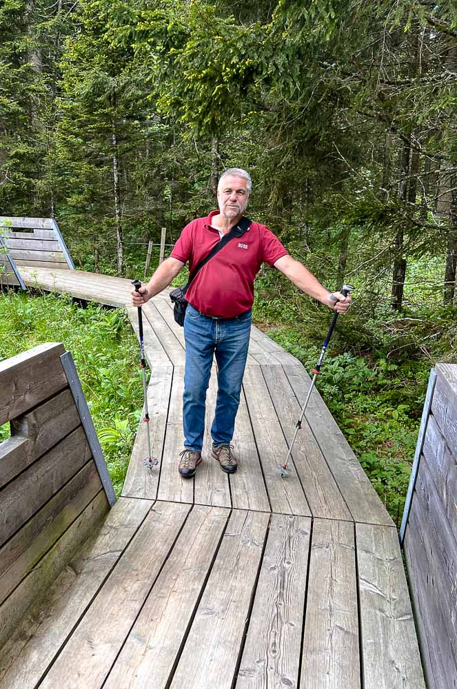 Mittlerweile kann ich nach meiner zweiten Knie Operation im April schon wieder halbwegs wandern - die Wanderstöcke müssen aber dabei sein, vor allem, wenn es Stufen gibt.