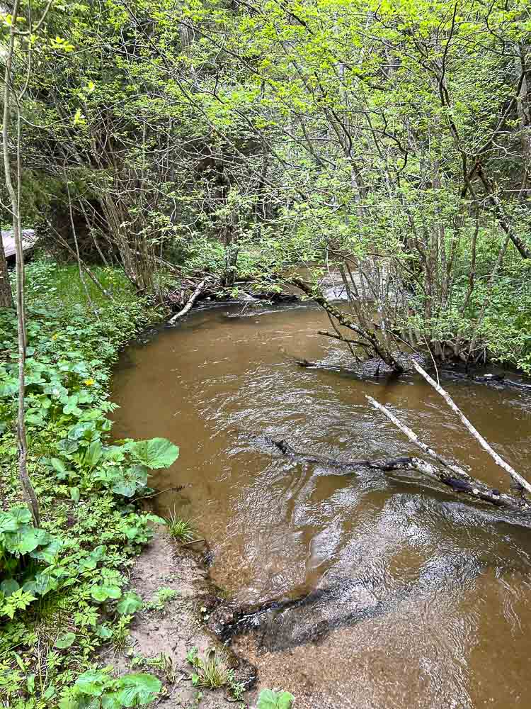 Es geht auch durch den Wald, der Bach führt brauner, vom Moor verfärbtes Wasser.