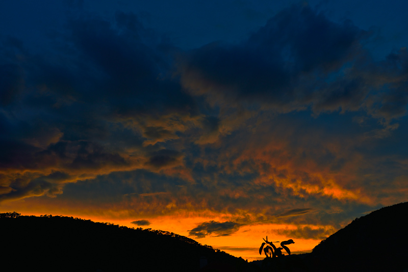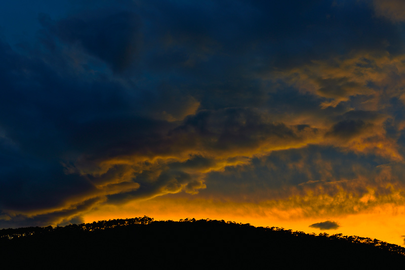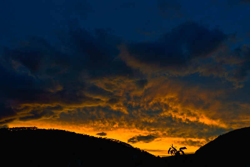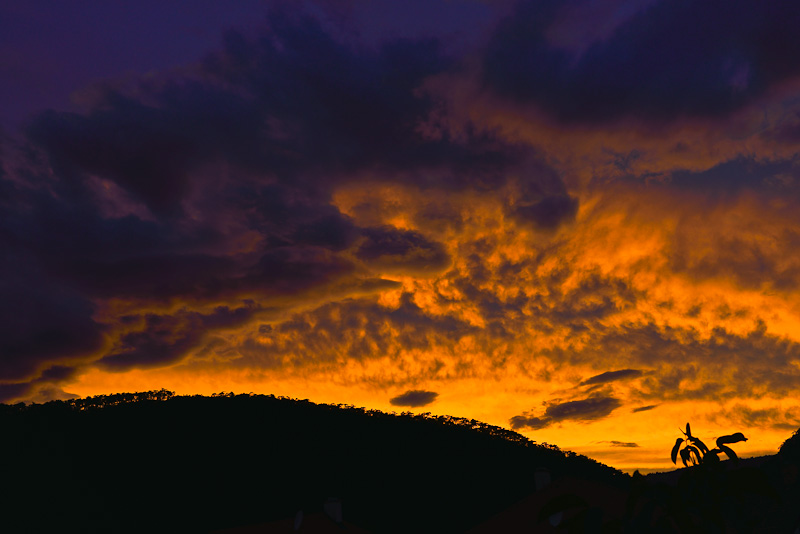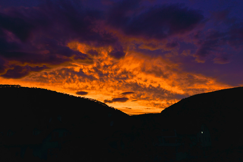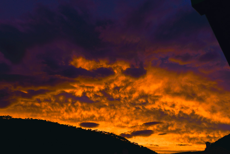 After sunset, the sky is colored orange-red: view from the window of my sleeping room ...