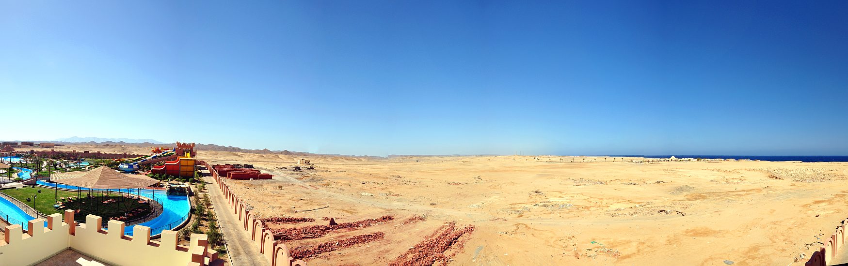 Von den Rutschen des Aqua - Parkes hat man einen netten Rundblick über die Wüste.