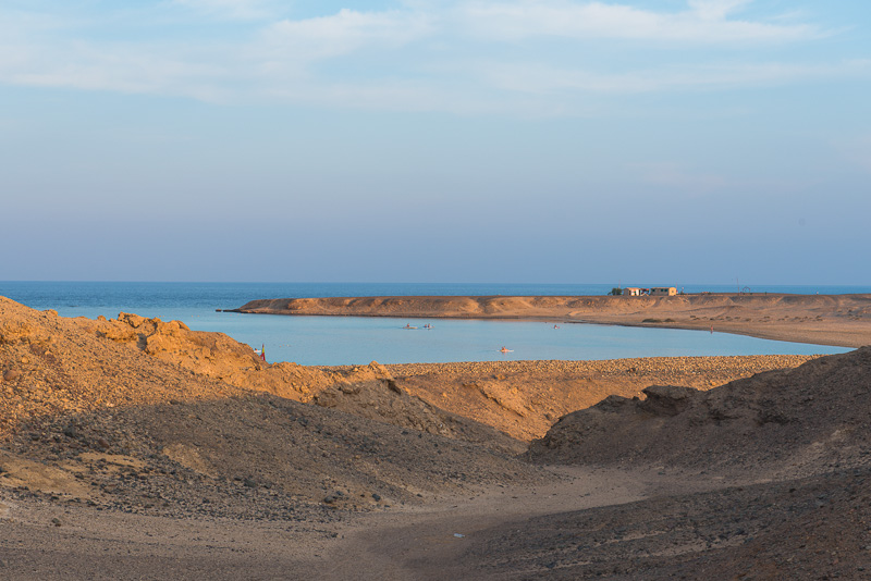 Blick über die Lagune zu den Bergen der Ägyptischen Wüste.