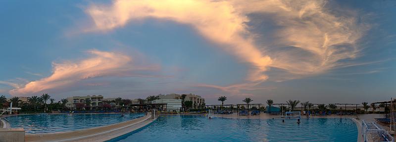 ... diese hohe Wolke. Hierher oder ins Bild klicken für eine größere Darstellung dieses aus 9 Hochformatbildern zusammengesetzten "Panoramas" am Activity - Pool.