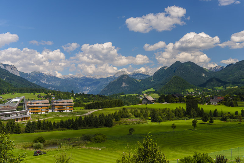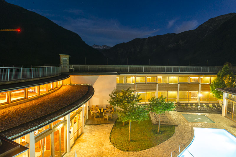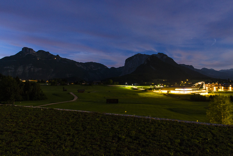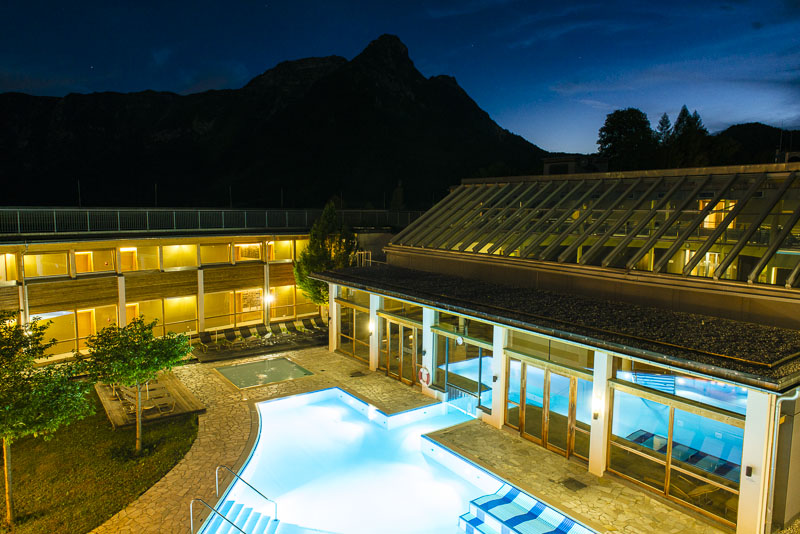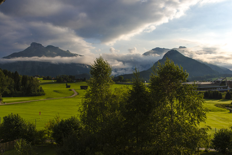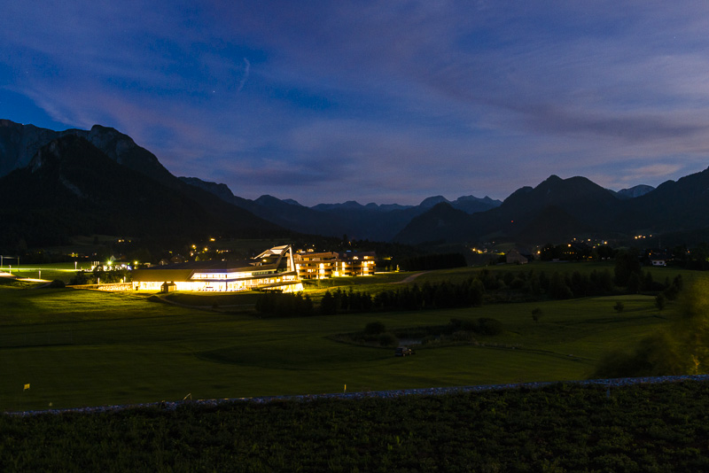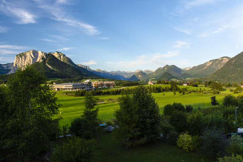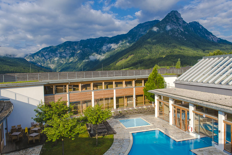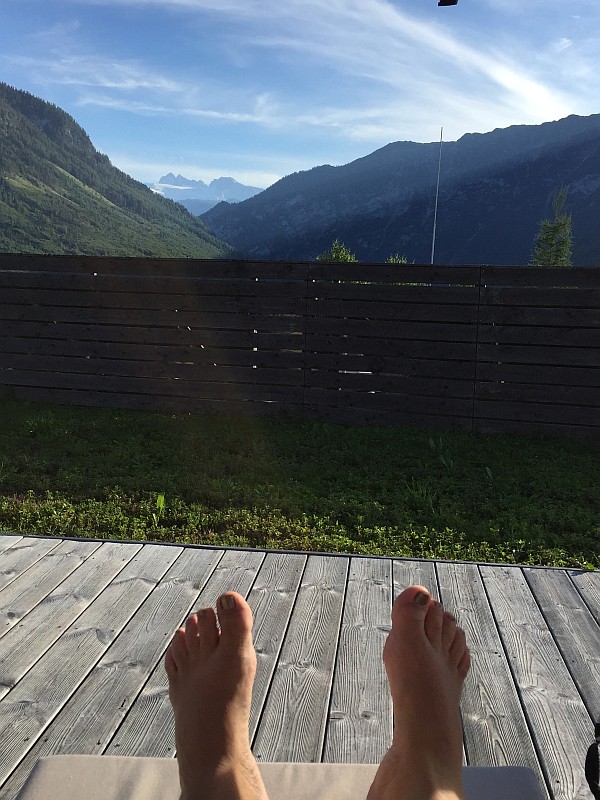 Back at the hotel, and off to the wellness zone, at the roof terrace, with the view to the Dachstein summit (with the Hallstatt glacier), ...