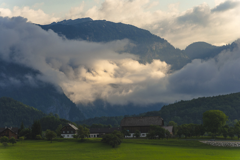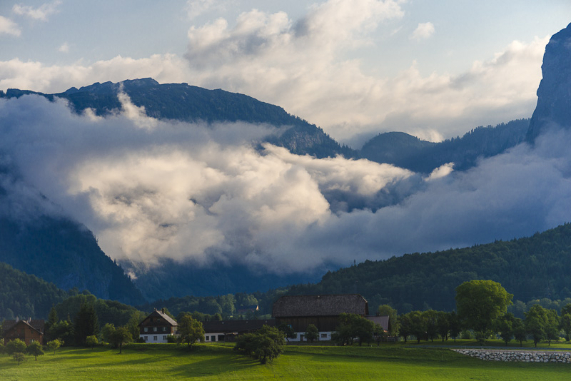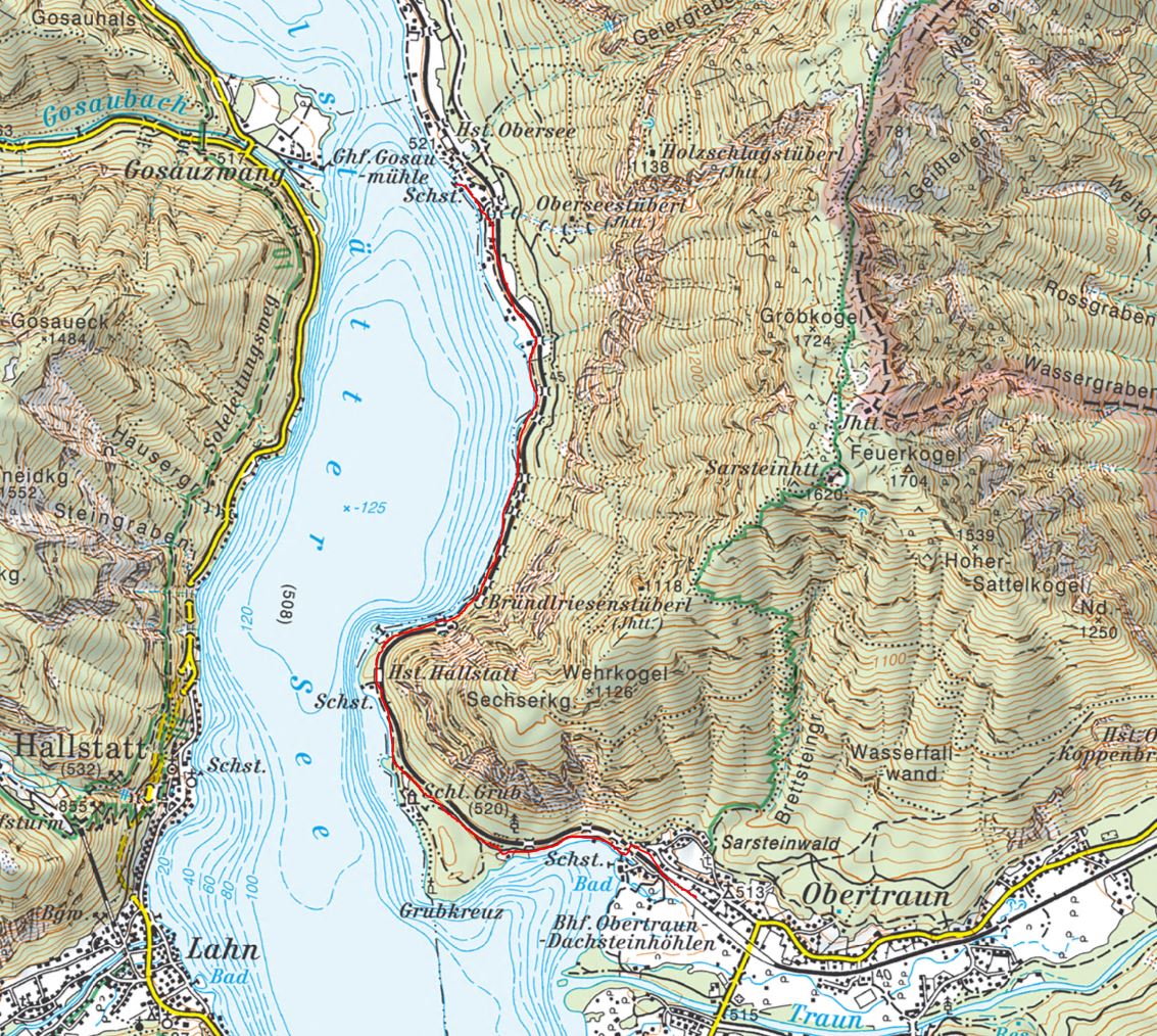 We drive to Obertraun, where the Koppentraun flows into the lake Hallstatt, and walk about 2/3 along the east shore of the lake.