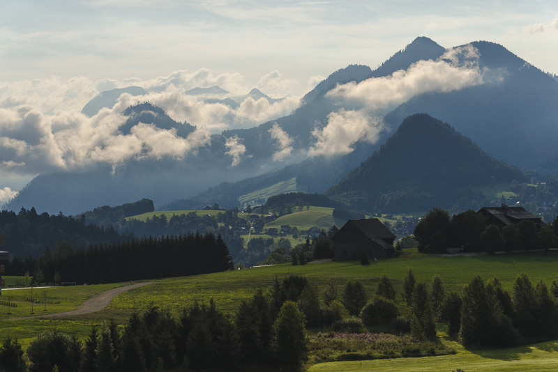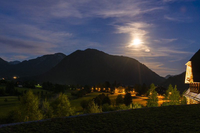 A nice restaurant called Seeraunzn near the jetty - behind are the steep excarpments of the Sarstein, which I recently climbed in June. 1.400 m height difference from here to the summit.