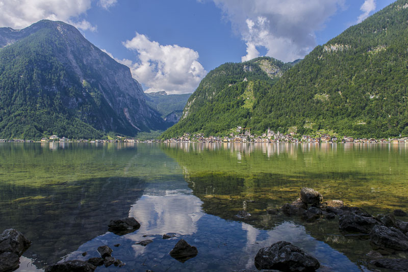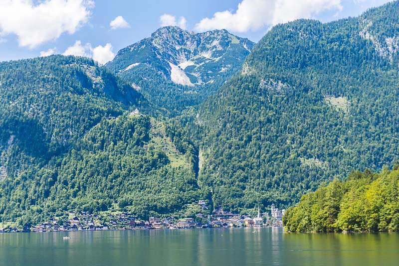 Soon, however, we are back at the water line and look over to the small town of Hallstatt.