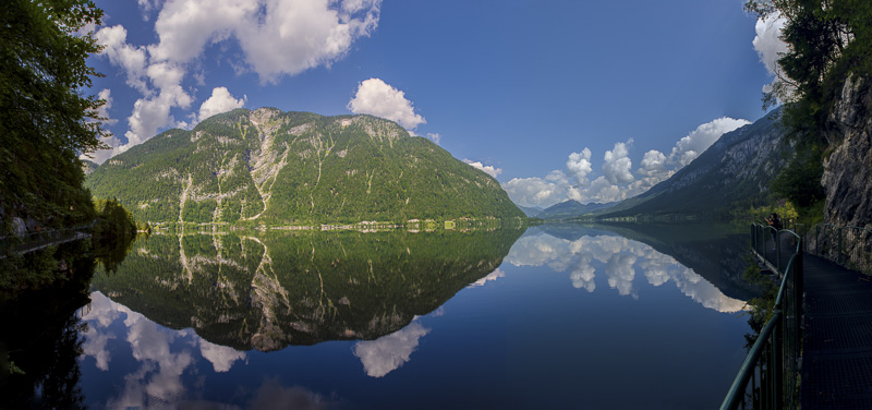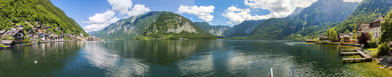 Panoramic picture from the east side of lake Hallstatt, with the small town of Hallstadt on the opposite side. Click here or into the picture for a larger display.