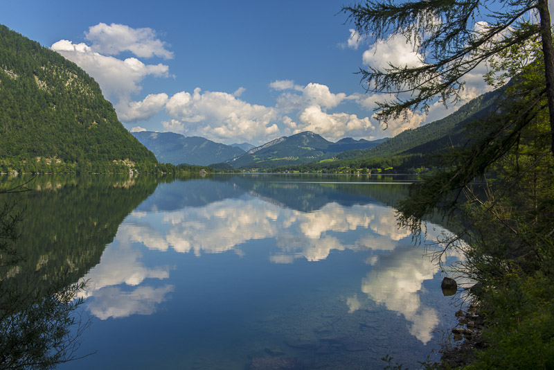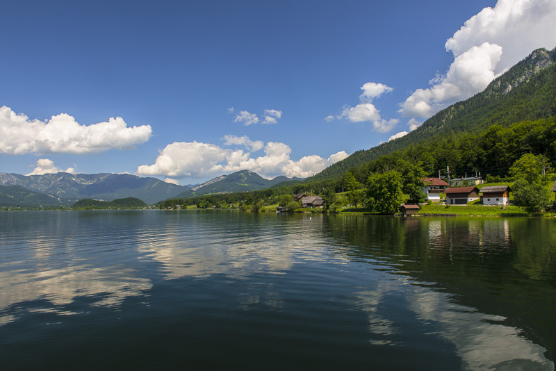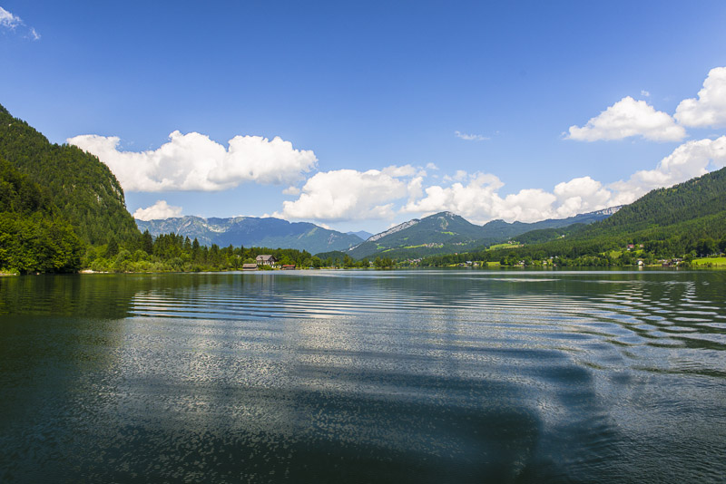 A short leg later, we look down along the lake nearly to its foot near Bad Goisern.