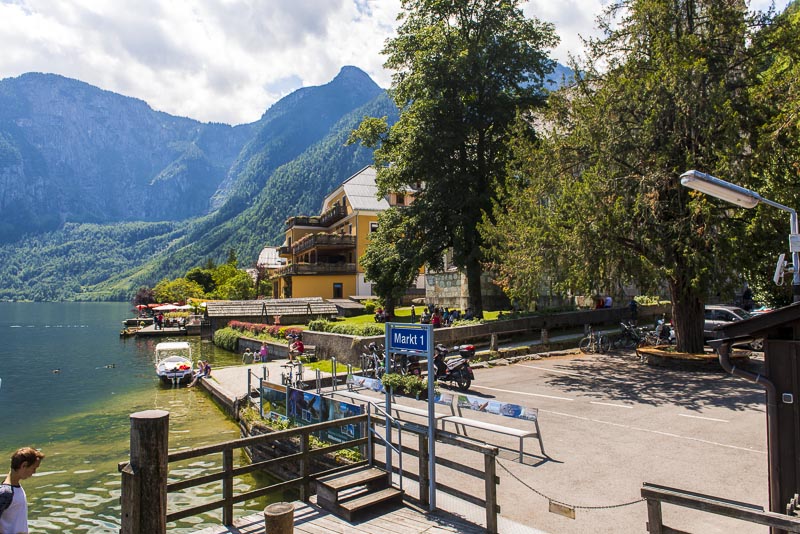 Here you find, closely to the boat landing place, the railway station called "Hallstadt". Better take the boat to the town with its very narrow streets, not giving room to buses or cars.