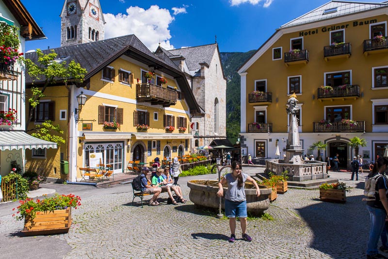 Panoramic picture of Hallstatt´s main square. Click here or into the picture for a larger display.