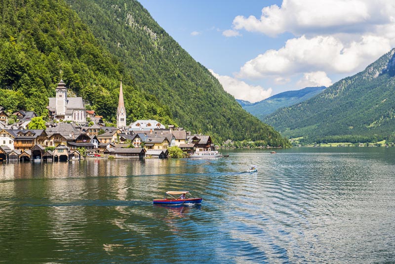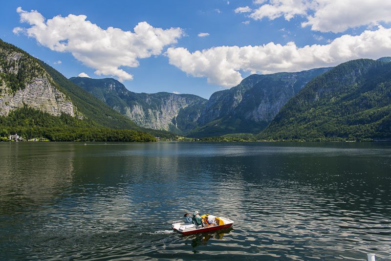 Today, the weather is sunny, but still not yet hot. An ideal day for a walk along Lake Hallstatt, followed by a boat trip.