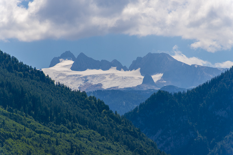 Dachstein summit cannot be seen - between this ridge and the summit, the large Dachstein plateau is stretched off, only gradually increasing in height (and containing the Hallstätter and Schladminger glacier that can be seen from afar).