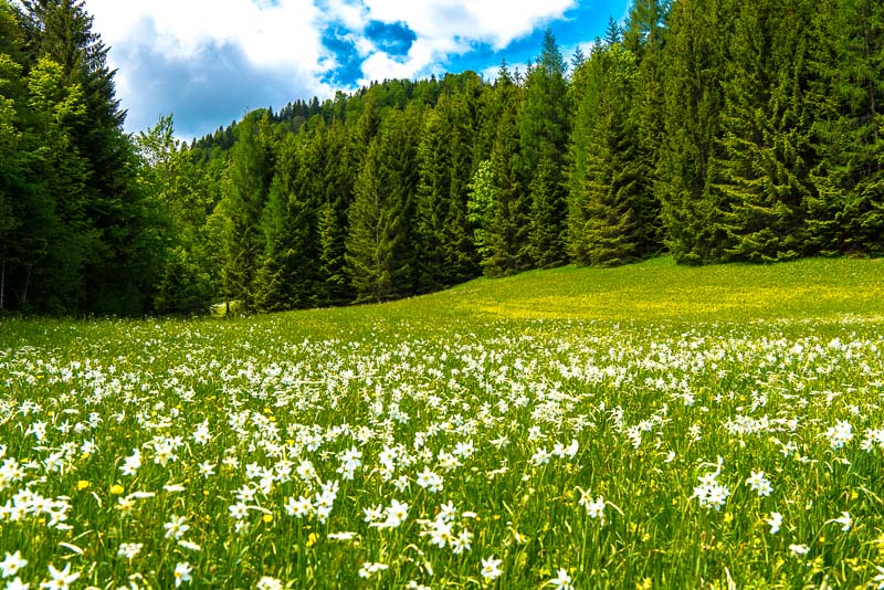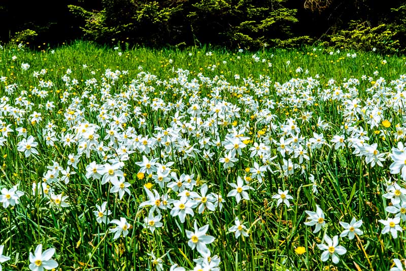 Unglaubliche Dichte an Narzissen. Ein betörender Duft liegt in der Luft.