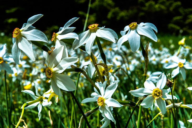 Danach verzieht sich Susi in den Wellness - Bereich des Hotels, und ich mache mich noch einmal auf, um Narzissen zu suchen, die ich auch etwas oberhalb neben der Straße finde.