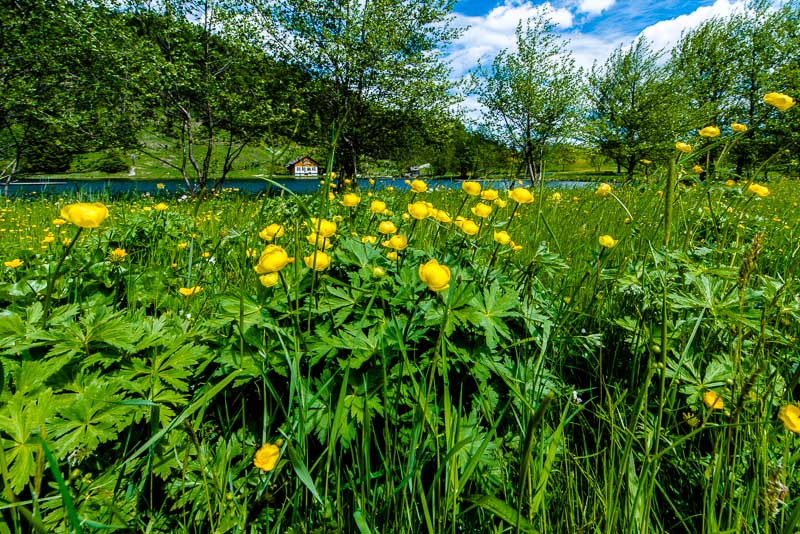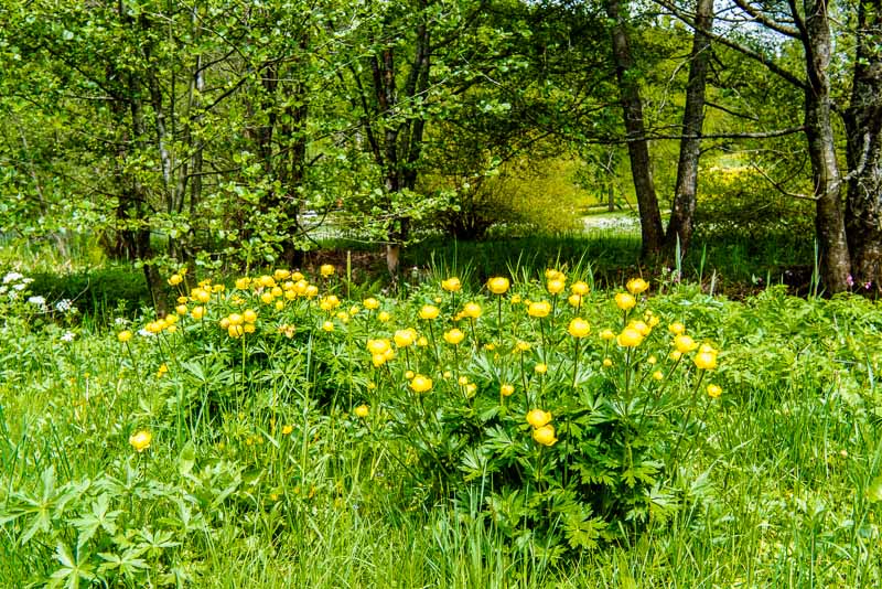 Trollblumen (Trollius europaeus) auf der Wiese nebenan