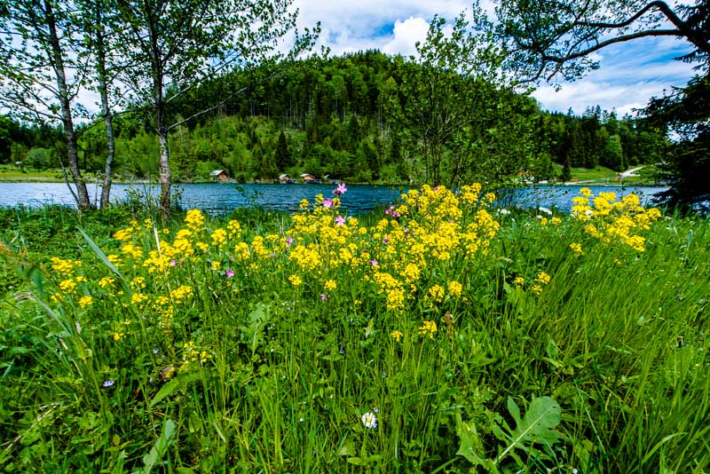 Ich wandere gleich von hier weiter, quer durch den Wald, und stoße auf diesen Teich.