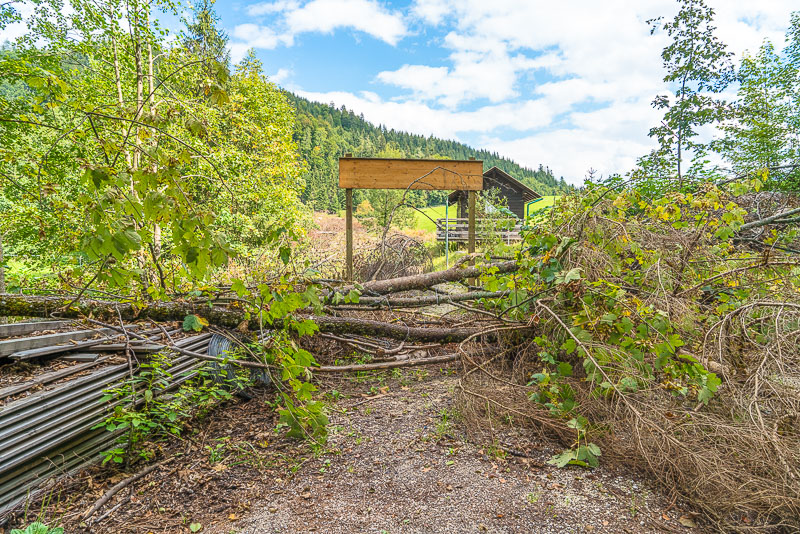 In der Früh ein kleiner Abstecher zum Sommersbergsee. Ein verwirrter Einheimischer, dem das Grundstück nicht einmal mehr selbst gehört, hat hier sinnlose Zerstörung angerichtet - und keiner kann ihm Einhalt gebieten (nach dem Motto: einem Nackerten kannst nix mehr ausziehen).