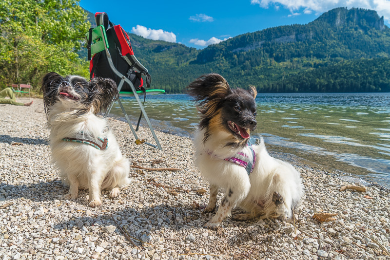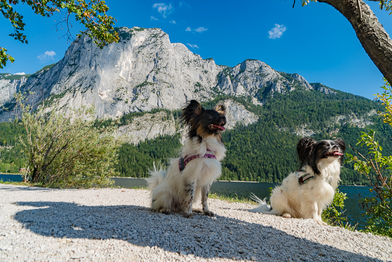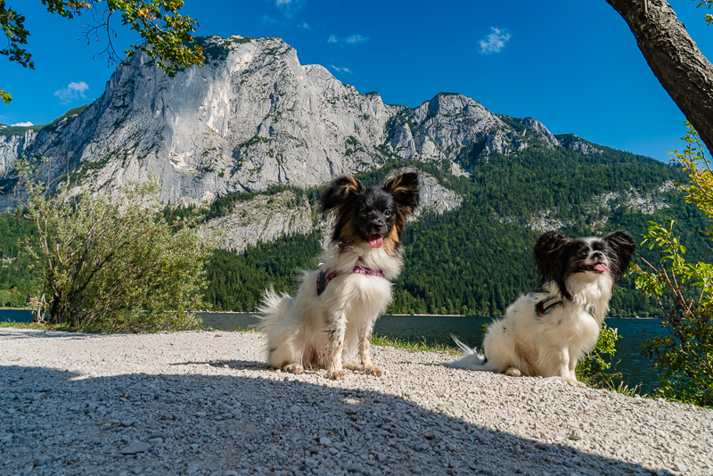 Altausseer See mit Trisselwand. Und zwei aufmerksame Hunde.