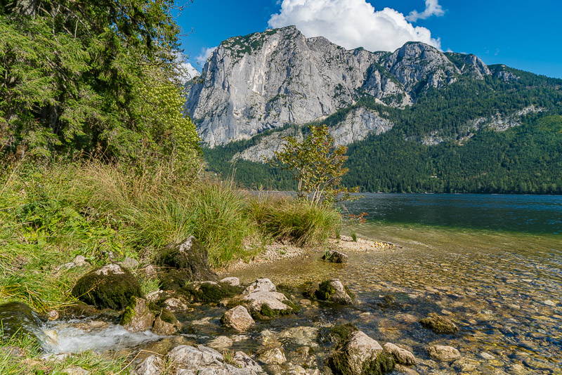 Altausseer See mit Trisselwand und ein Bach, der vom Loser herunterkommt.