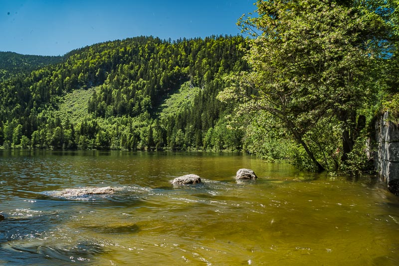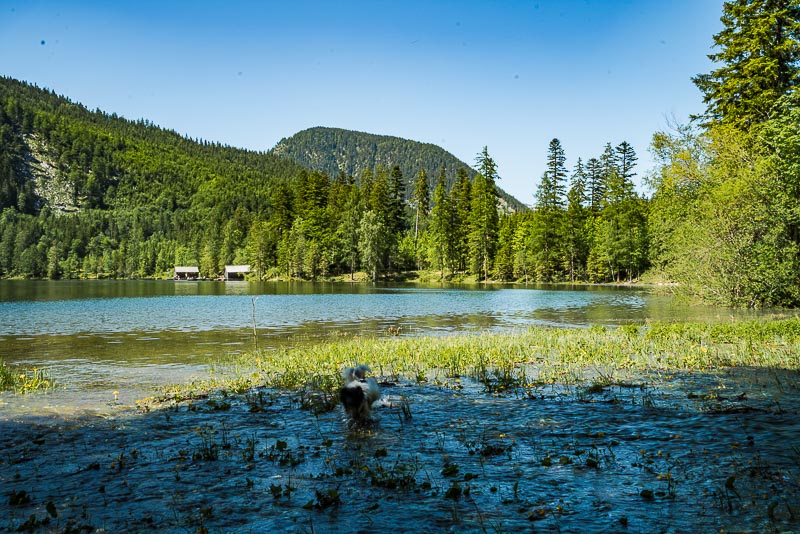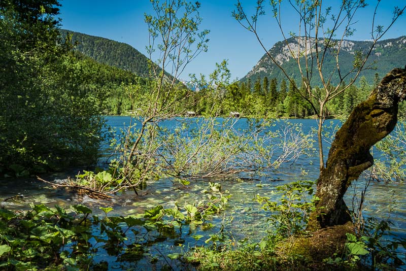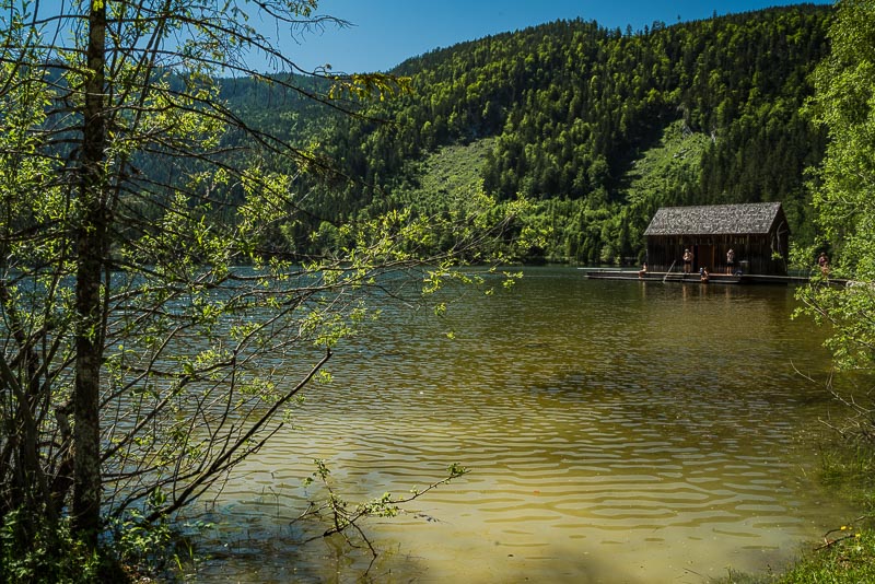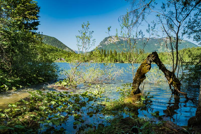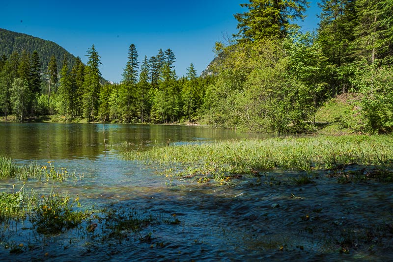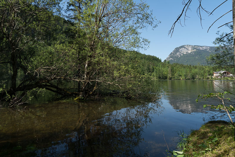 Das viele Schmelzwasser aus den höheren Lagen (der Ödensee erhält sein Wasser von den östlichen Ausläufern des Dachsteinplateaus) nach dem überaus schneereichen Winter füllt den See - so hoch habe ich ihn noch nie gesehen.