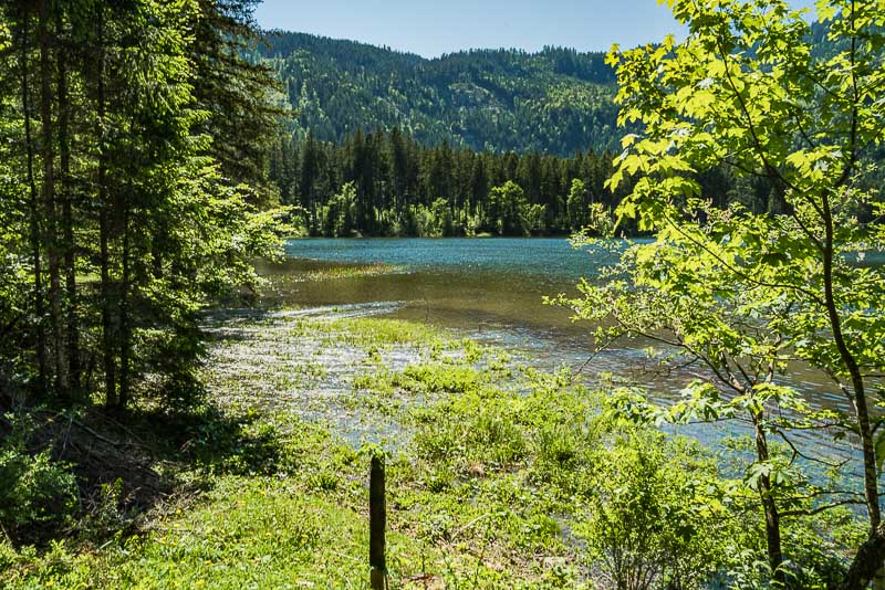 Auch diese feuchte Wiese beim See ist ordentlich überschwemmt durch den Bach, der hier hereinfließt.