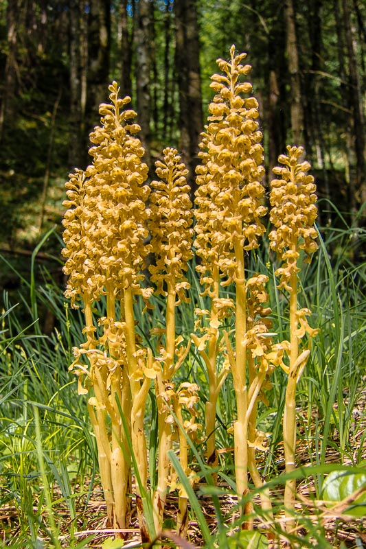 Unterwegs treffen wir auf diese wunderschöne Gruppe von Vogelnestwurzen (Neottia nidus-avis).