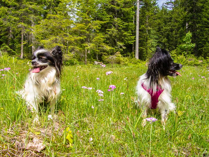 The guests are allowed to use the wellness area of the hotel Wasnerin on the departure day till late afternoon. But - what happens with the dogs? To enable the girls to use the wonderful roof terrasse near the pool, with its gorgeous view around, I offer them what I anyway more like to do: a late morning walk with the dogs. So, I drive up to the Sommersbergsee and walk through the forest, heading for the Plöcken pass.