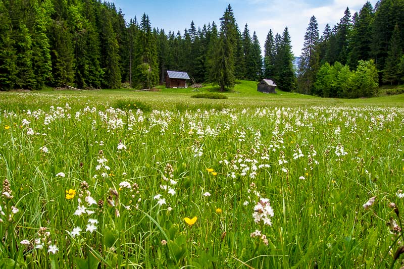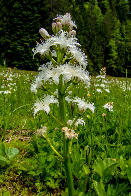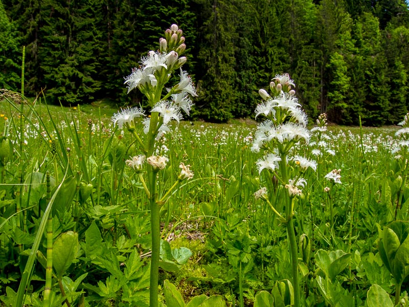 At the Höheralm, at nearly 1.000 m asl, thousands of bogbeans (Menyanthes trifoliata) are flowrishing in the boggy meadow.