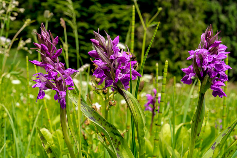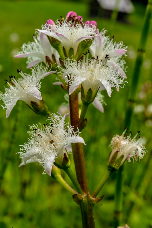 Bogbeans (Menyanthes trifoliata) and Western marsh orchid (Dactylorhiza majalis).