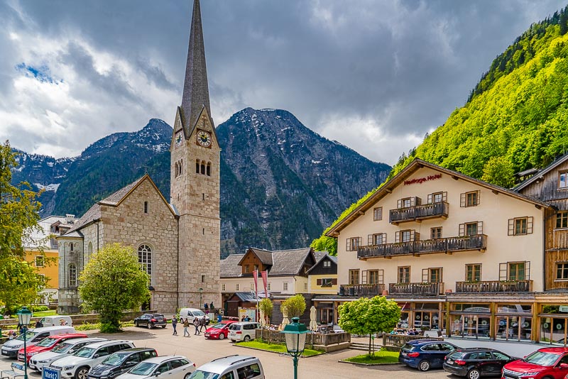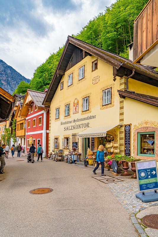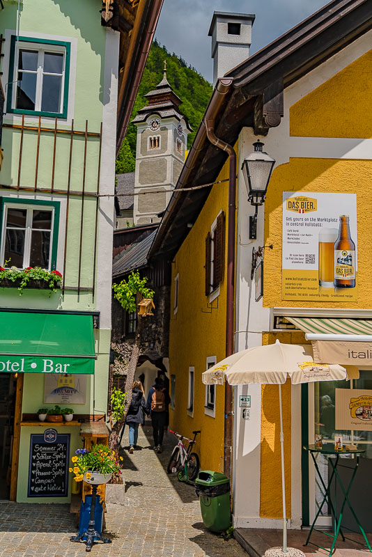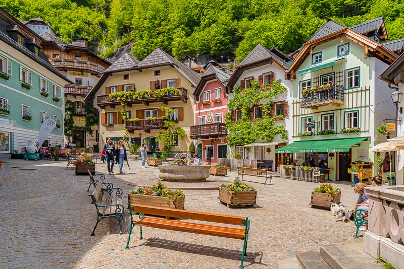 Main Square of Hallstatt. Many of the dozens of shops and restaurants are still closed - with so few visitors.