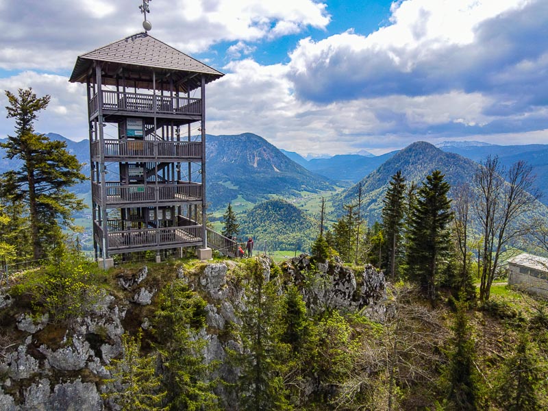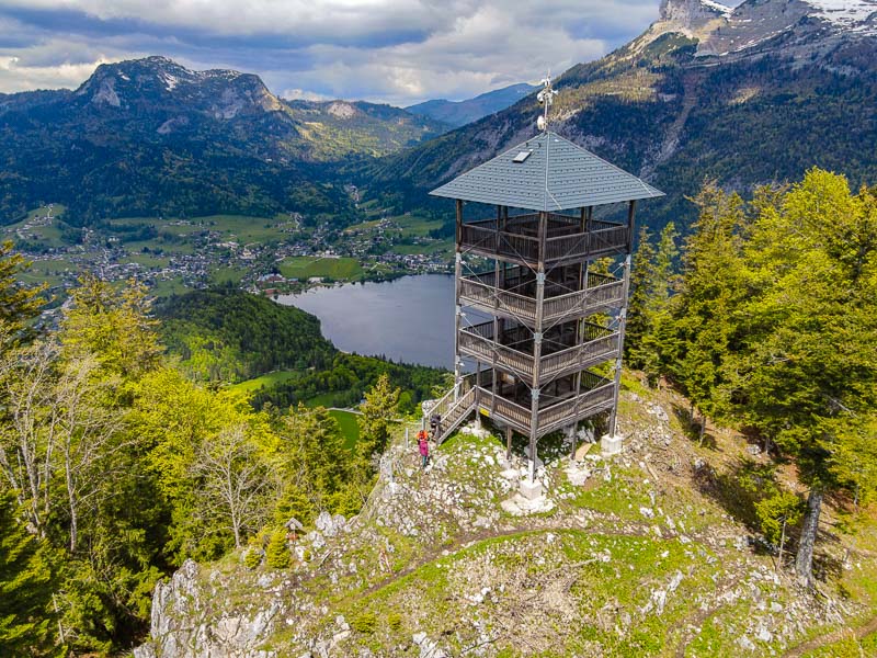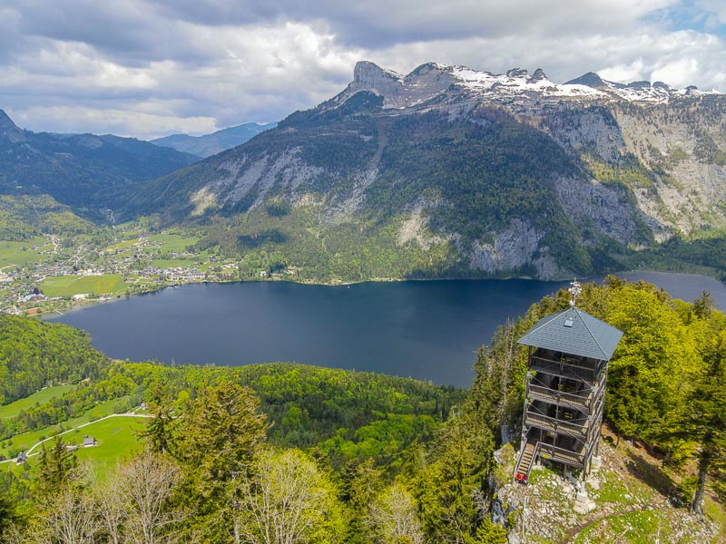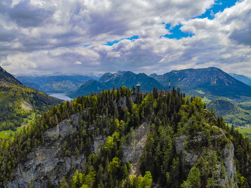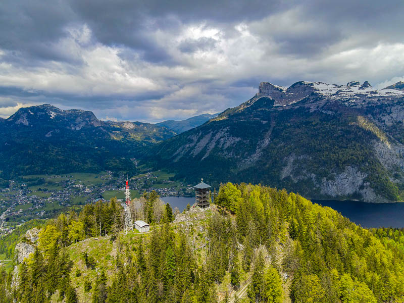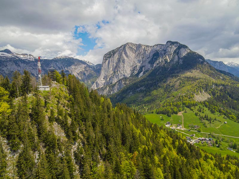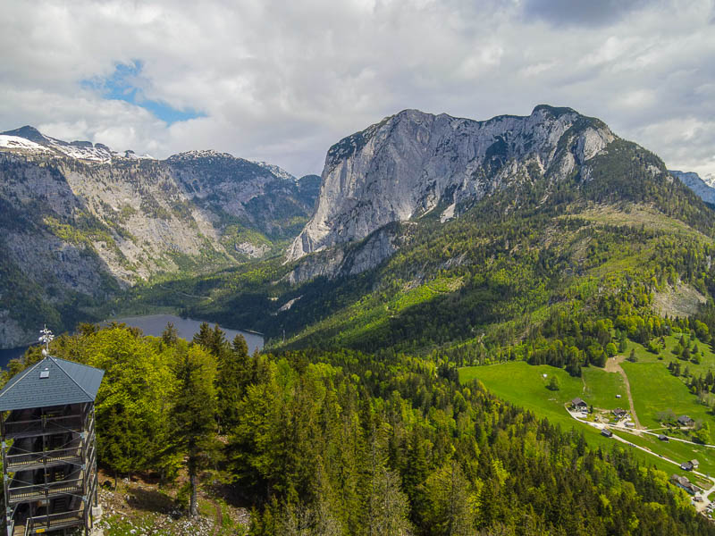 Alex has taken with him his drone which takes amazing pictures. The view tower and the view to Sandling (left), Loser and Altaussee with the lake.